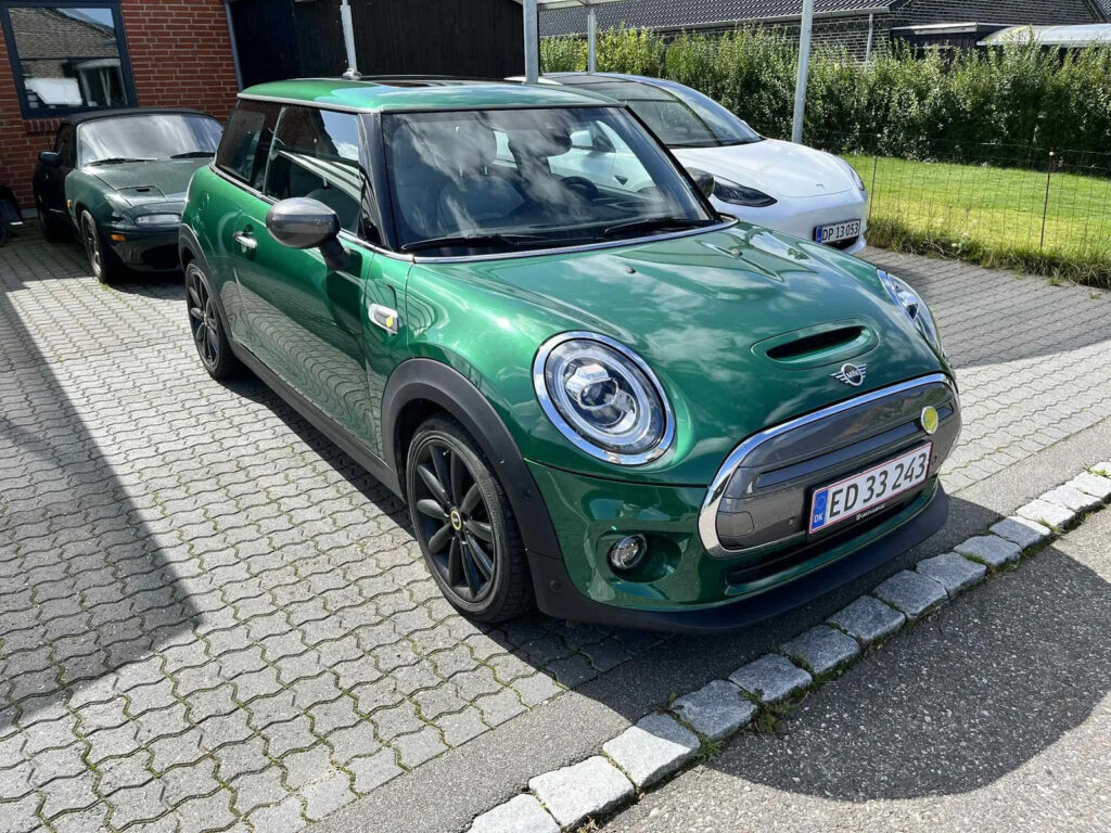 Flot samt kanon sjov MINI Cooper SE Maximise i den traditionsrige og friske British Racing Green farve.